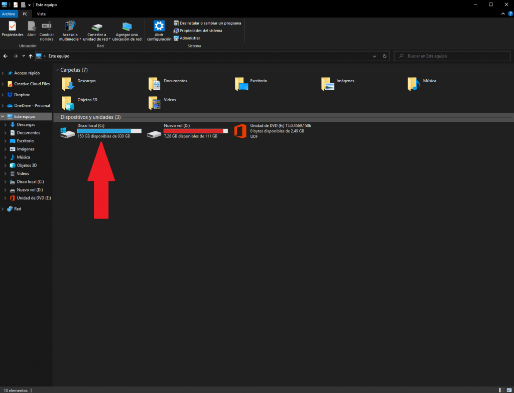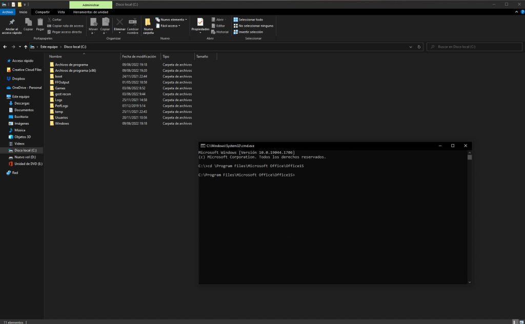 1- Lo primero que se necesitara será ejecutar «cmd» en la carpeta raíz del sistema operativo. Para ello tendremos que abrir el explorador de Windows e ingresar a la unidad «C:»
